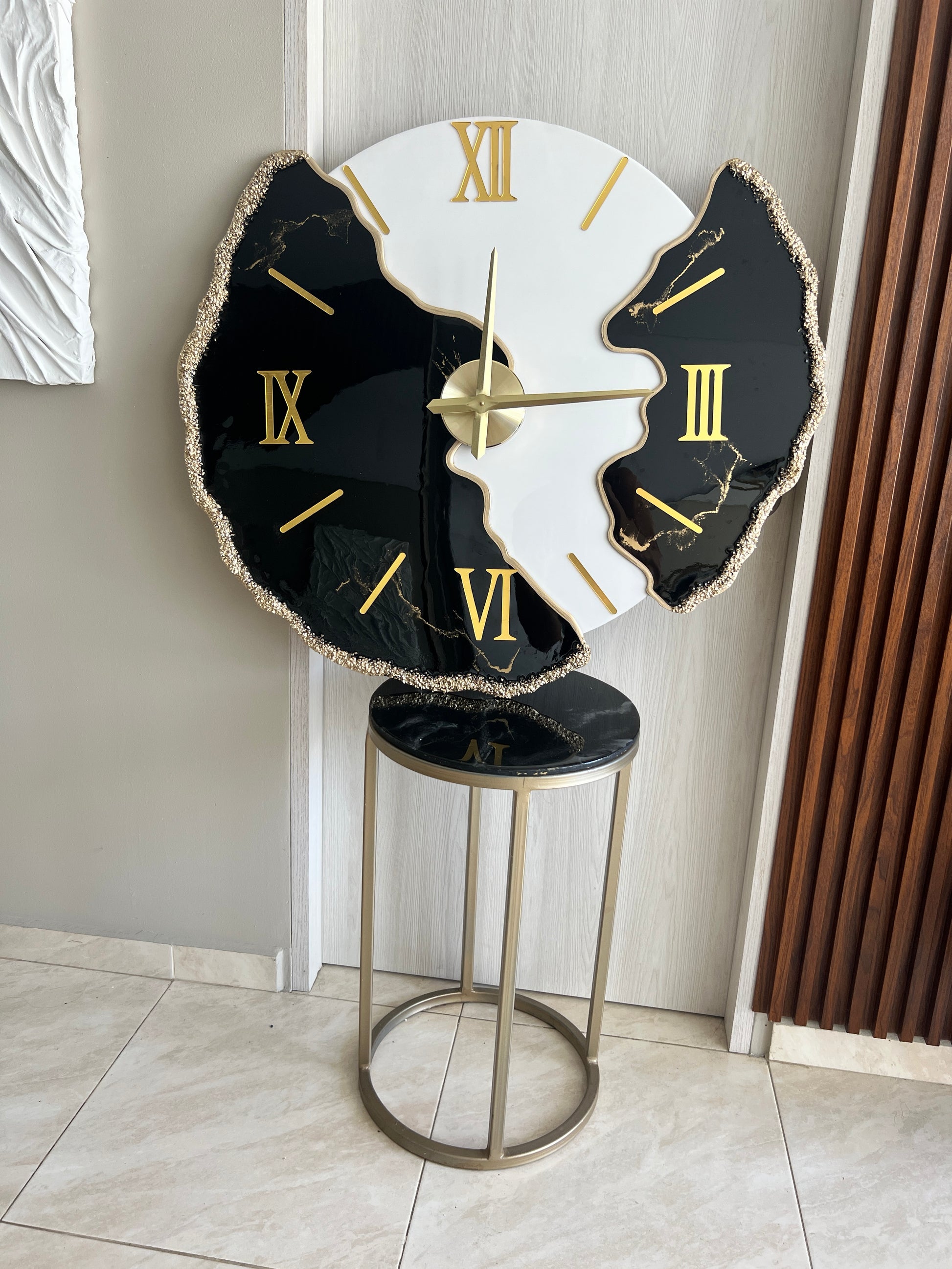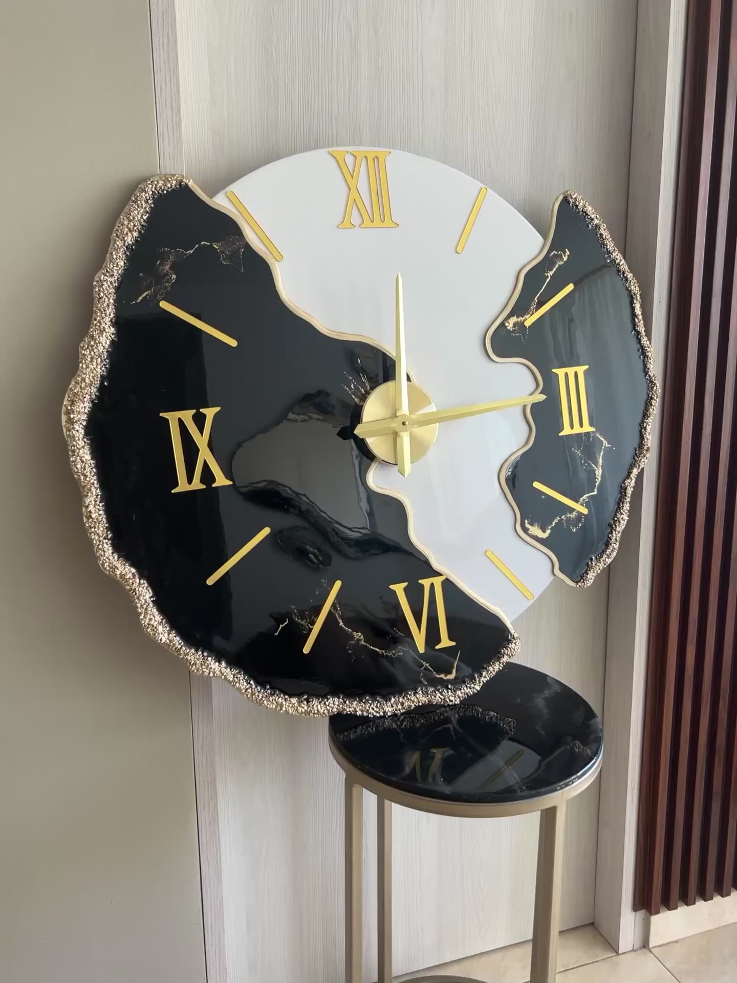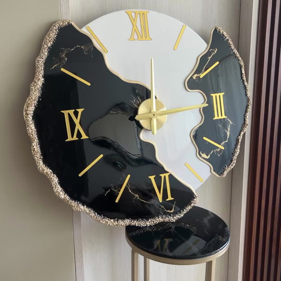 Descubre la fusión perfecta entre modernidad y elegancia con Lunar Black, un reloj de pared de diseño orgánico e irregular que transforma cualquier espacio. Su base en tonos blanco y negro crea un contraste impactante y sofisticado, mientras que los toques en dorado aportan un brillo distintivo y lujoso.
