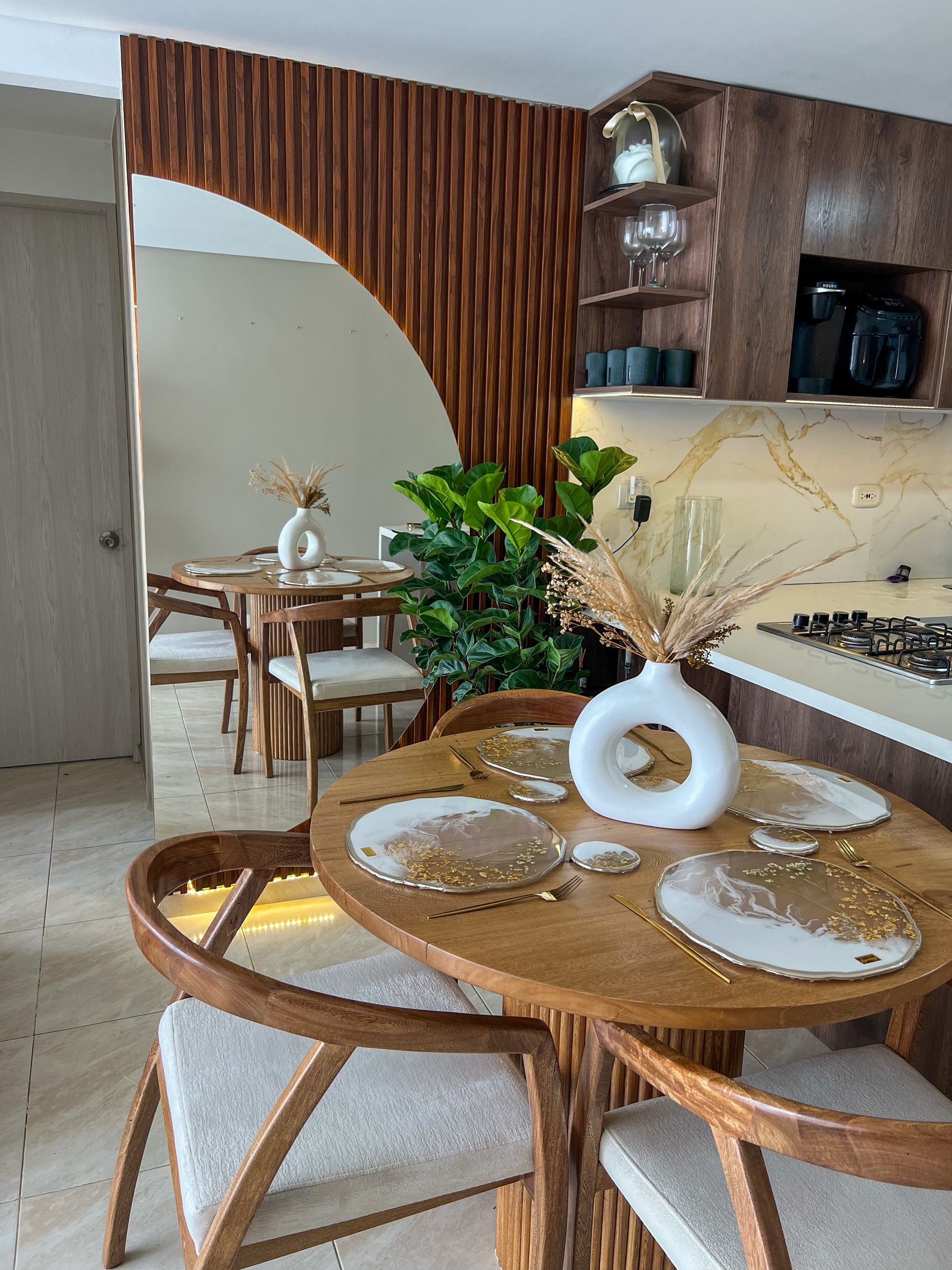 Golden Snow encarna la fusión perfecta entre la pureza de un paisaje invernal y el brillo cálido del oro. Este nombre sugiere una sinfonía de contrastes: la blancura inmaculada de la nieve se ve realzada por destellos dorados que iluminan y transforman cada detalle en una obra de arte sofisticada. La estética de Golden Snow evoca una atmósfera de tranquilidad y elegancia, donde cada matiz y textura se unen para ofrecer un refugio de modernidad y refinamiento. Ideal para aquellos que desean envolver sus espacios en una sensación de serena opulencia, este concepto invita a disfrutar de la magia de un invierno eterno, lleno de luz y encanto.
