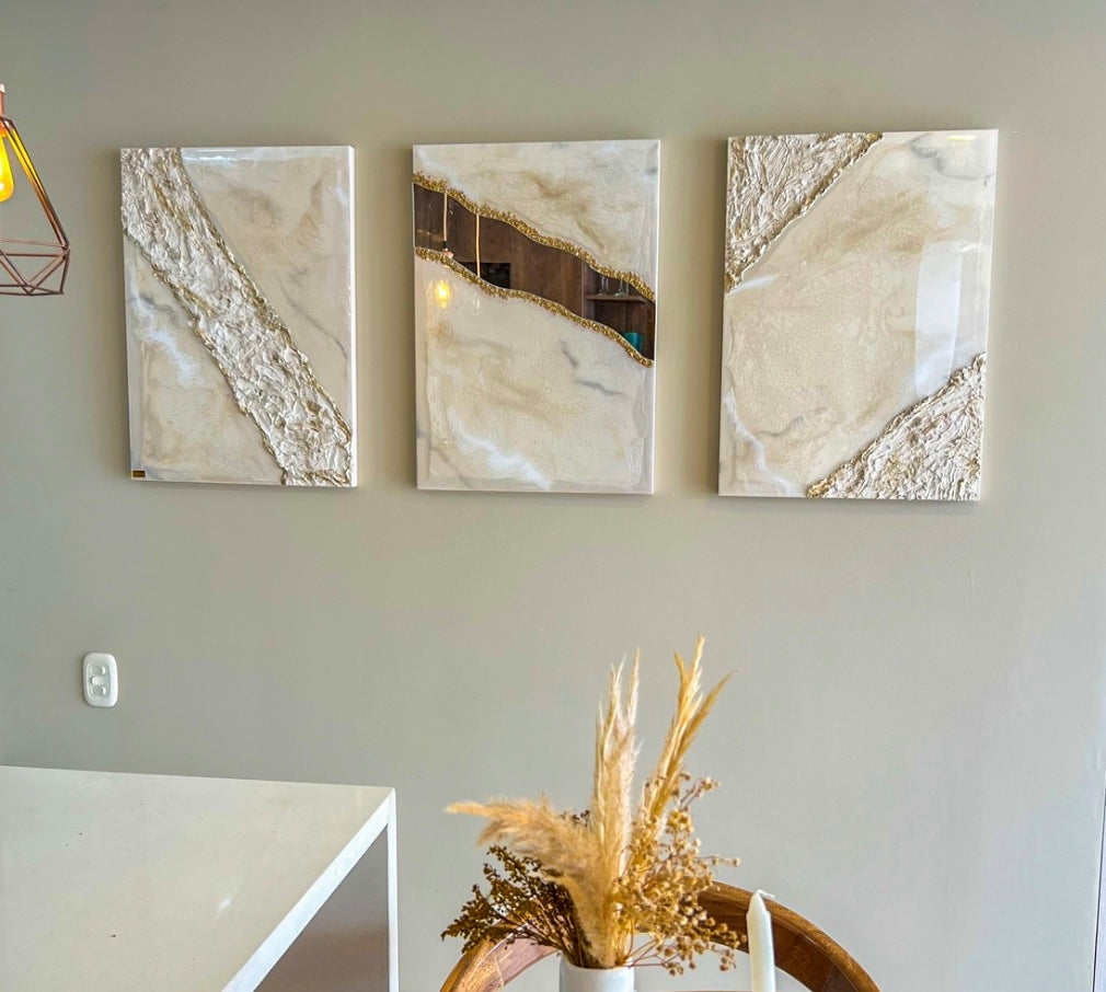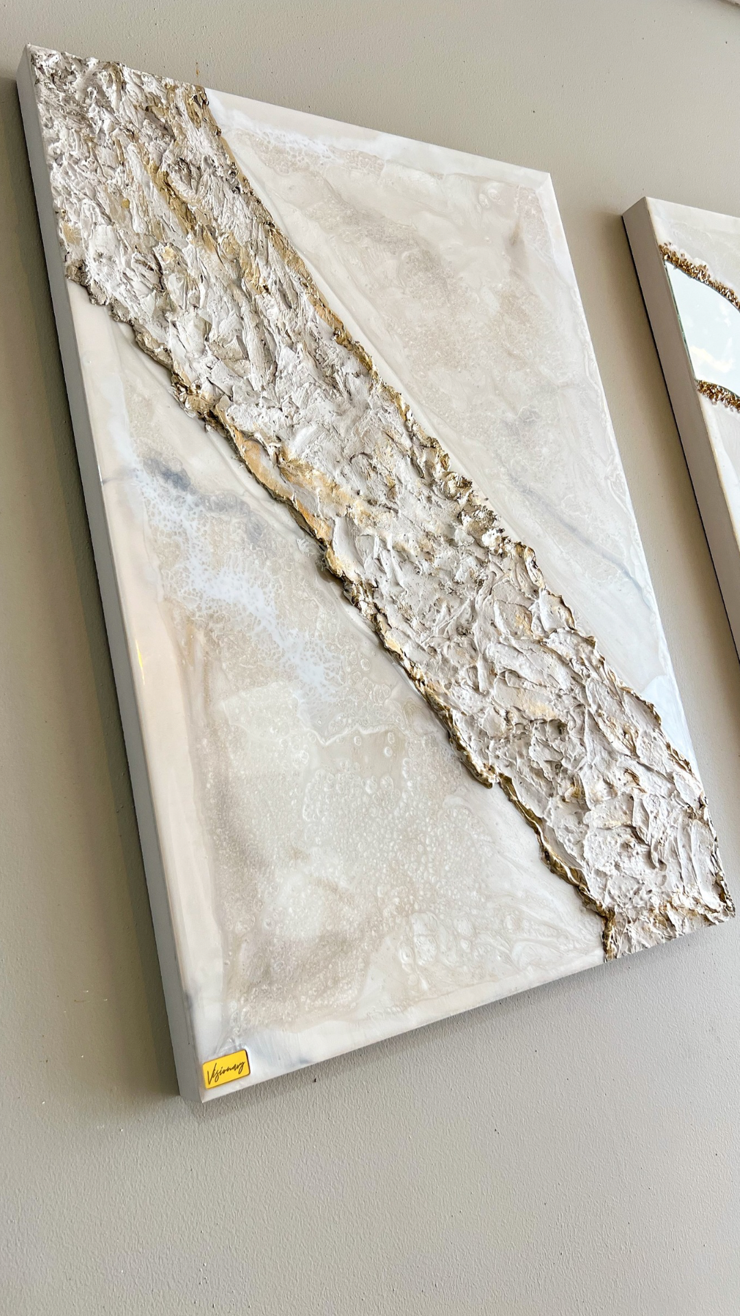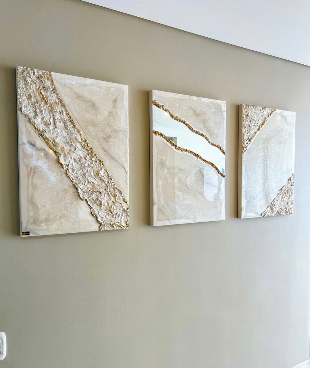 Golden Silence captura la quietud dorada de un paisaje inalterado por el tiempo. Sus texturas orgánicas y su paleta neutra invitan a la contemplación y al equilibrio, elevando cualquier decoración con discreta opulencia.