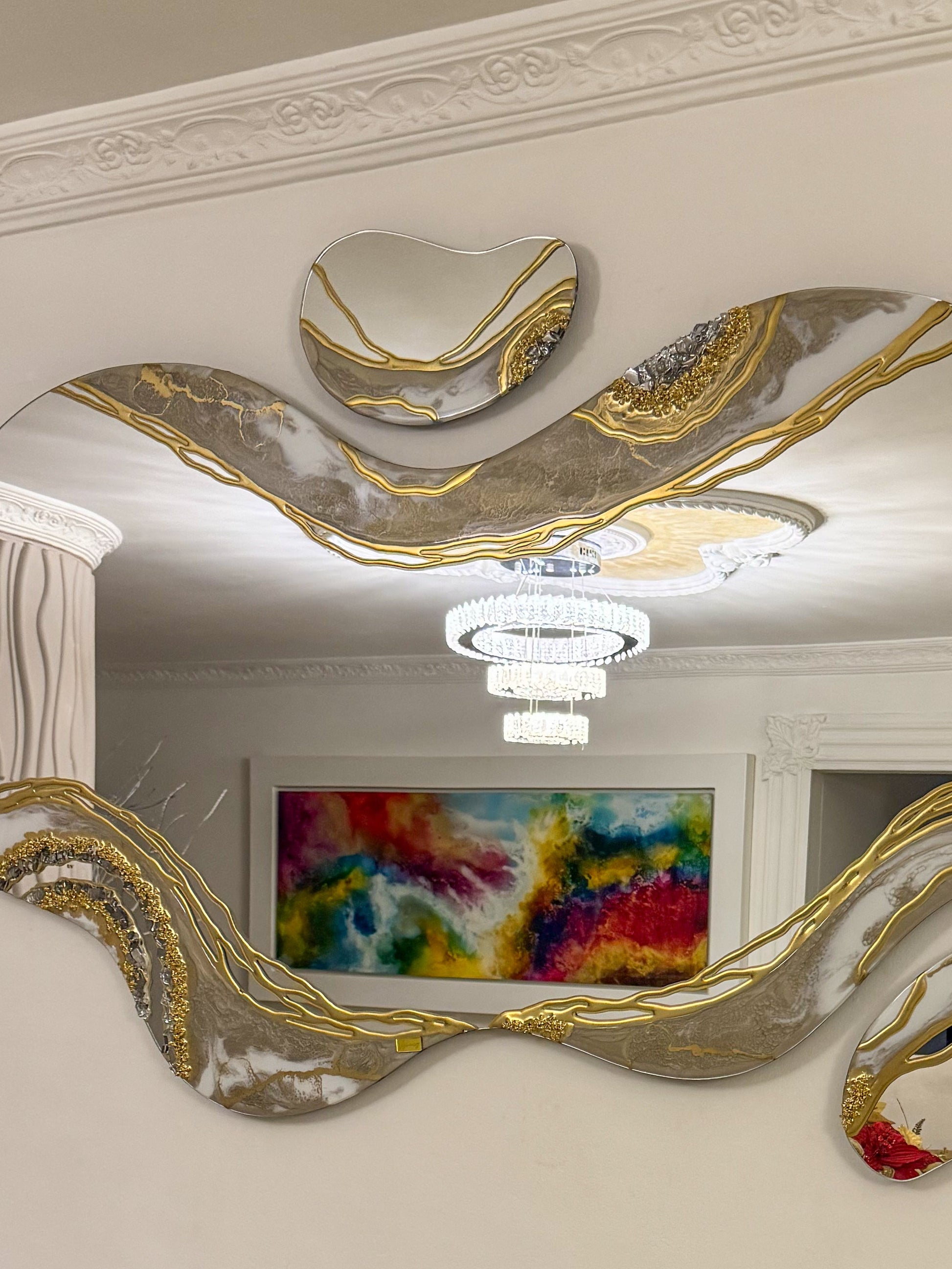 Los detalles metálicos sutiles y las texturas tipo geoda añaden profundidad, brillo y carácter sofisticado, creando un equilibrio perfecto entre lujo contemporáneo y arte artesanal. Cada espejo es único, con patrones irrepetibles que reflejan la esencia exclusiva de Visiónary Resin.